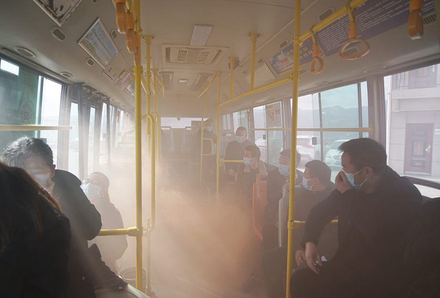 公交車動態(tài)安全演練模擬一輛正在行駛中的公交車,駕駛員突然聞到車內(nèi)有異味,發(fā)現(xiàn)車輛尾部發(fā)動機艙在冒煙,駕駛員隨即打開緊急雙閃燈,啟動車內(nèi)智能監(jiān)控報警,向公司智能調(diào)度中心報警,并立即靠邊停車,打開前后車門,疏導(dǎo)乘客從前后門有序下車,遠(yuǎn)離車輛。